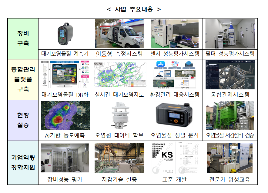 산업부는 이번 사업을 통해, 산업단지내 대기오염물질을 실시간 모니터링하고 분석하기 위한 사물인터넷(IoT) 기반 측정·분석장비를 도입하고, 측정·분석결과의 데이터베이스(DB)화, 실시간 대기오염정보 제공, 환경관리 대응 등을 위한 통합관리플랫폼을 구축할 계획이다.