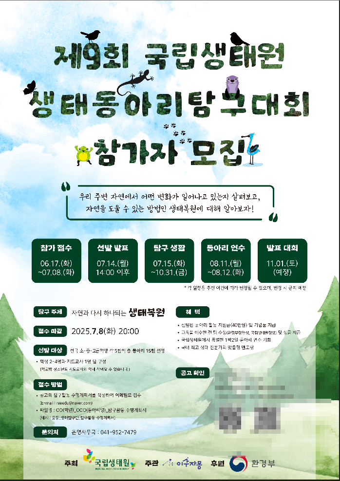 국립생태원이 국립생태원, 제9회 생태동아리 탐구대회를 개최한다.